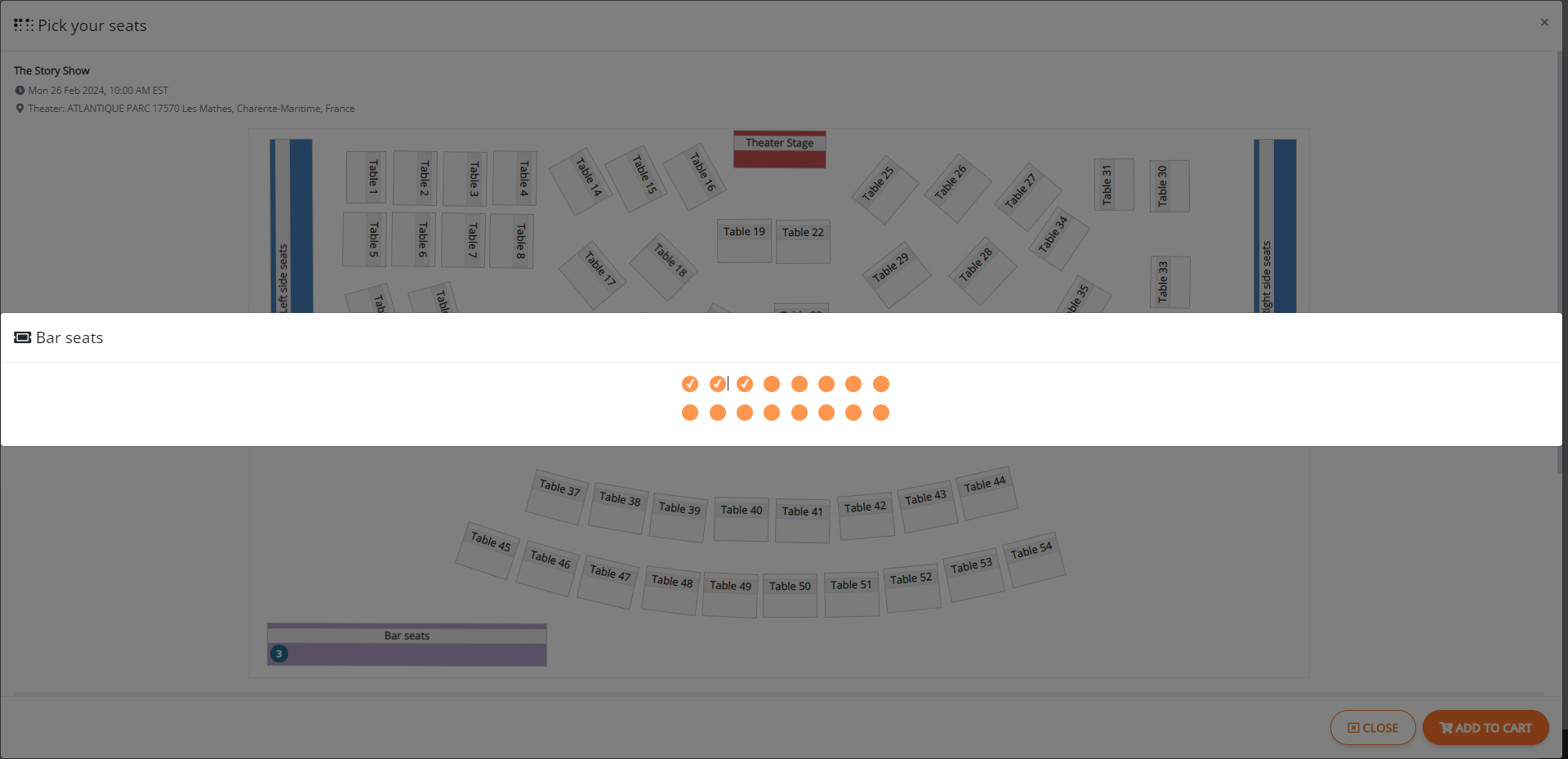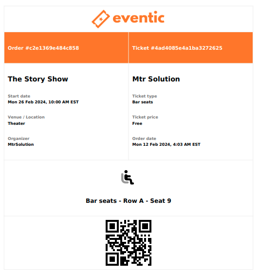 The attendees will be able to select seats from the layout you just created. All the initial features that were integrated in Eventic like ticket sales dates interval, tickets limit per attendee.. were considered while developing the module.