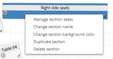 A section is a part of the seating plan, and it is composed it self by one or multiple rows. Each seating layout has to have at least one section besides the stage. Right click on a section to:
